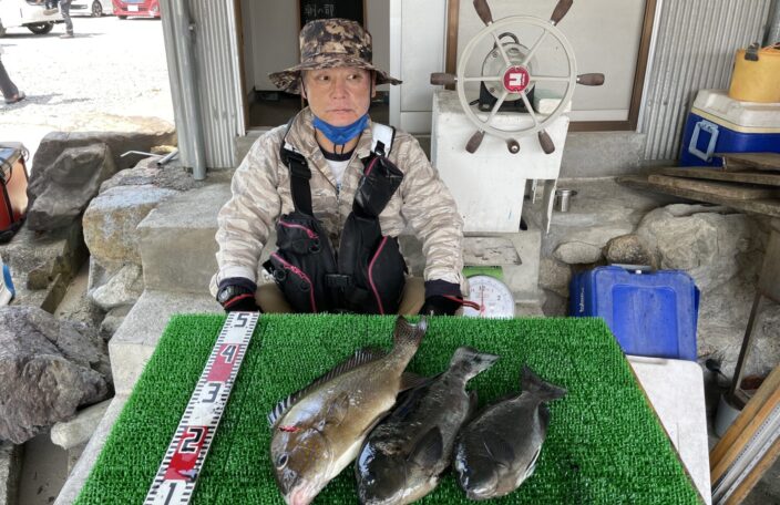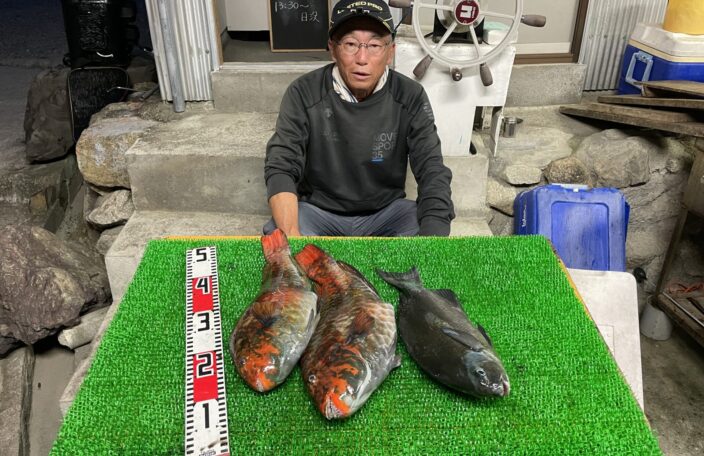 磯釣りでウスバハギ・グレ2枚・イガミ・おじさん・ゲット!