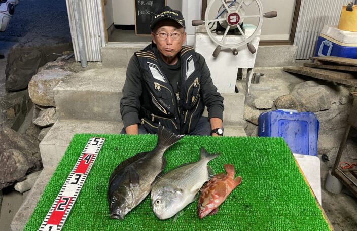 磯釣りでタマン45㎝・グレ46㎝まで3枚・メイチ・ゲット!