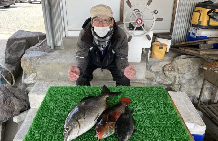 磯釣りでグレ41㎝まで2枚・カワハギ・ゲット!