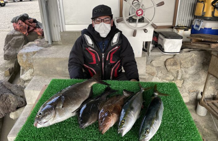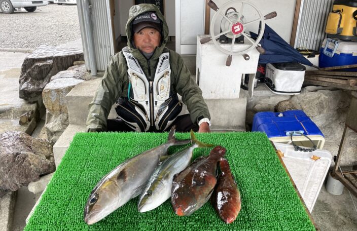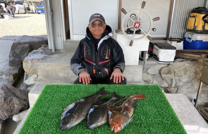 磯釣りでカンパチ59㎝・ハマチ50㎝・イガミ2枚・ゲット!