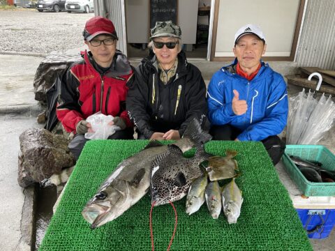 磯釣りでヒラスズキ71㎝・イシガキ40㎝・シマアジ・カワハギ・ゲット!