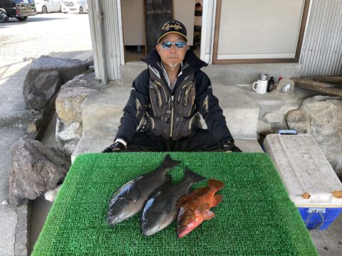 磯釣りでグレ43㎝・38㎝・アカハタ・ゲット!