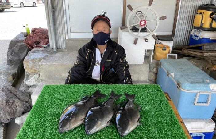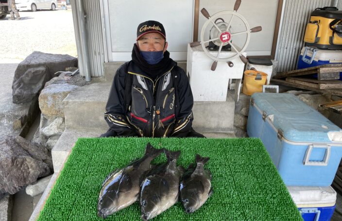 磯釣りでチヌ50㎝・グレ41㎝まで3枚・ボラ・ゲット!