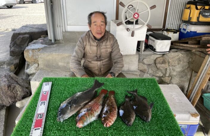 磯釣りで石鯛48㎝・グレ40㎝・メイチ・カワハギ・ゲット!