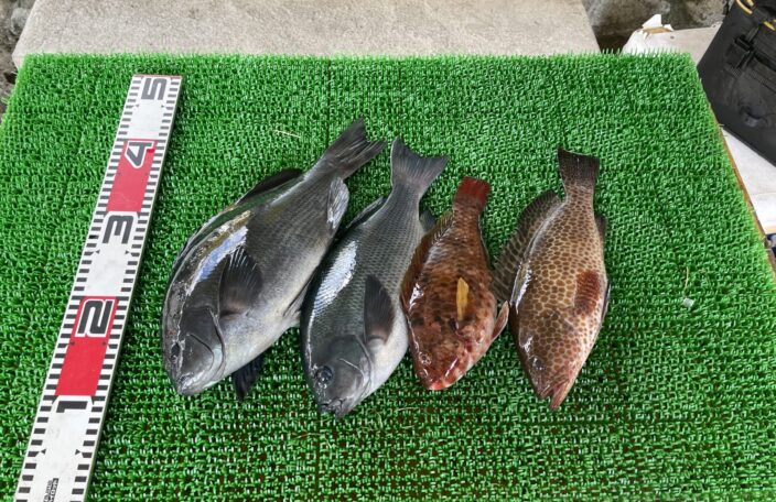 磯釣りでグレ40㎝・イガミ・オオモンハタ・ゲット!